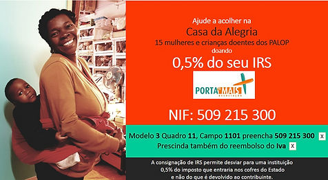 Ajude de maneira simples! Um pequeno gesto seu pode fazer a diferença. Contribua com 0,5% do seu IRS ao inserir o NIF da Casa da Alegria